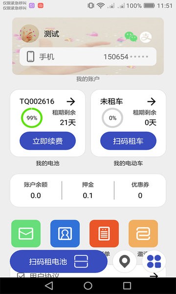 6、在手机中结算电池租金,并进行历史订单统计,随时可以查询自己租电池使用的记录;