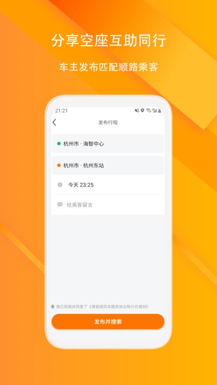 发布匹配顺路同行;