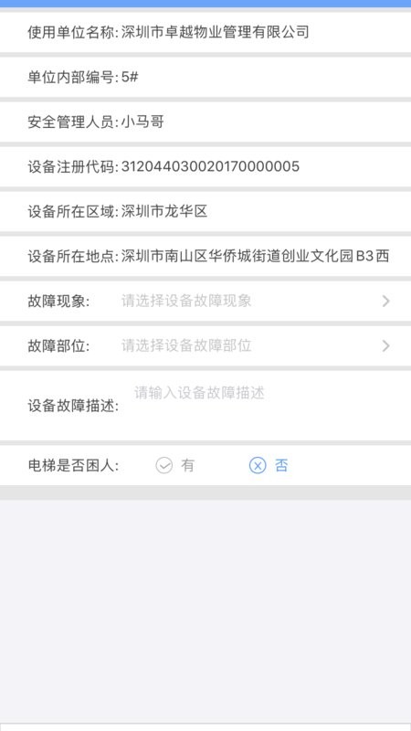 管理人员可在app上对维保情况进行确认,以及对维保记录、维修故障进行签名确认