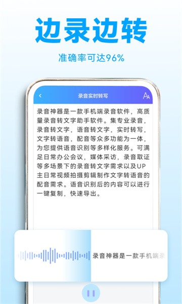 录音转文字助理是集手机实时录音、高质量录音转文字为一体的工具类软件。
