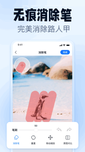 只需轻轻一点,我们的智能消除笔就能快速去除照片中的瑕疵和不必要的内容。无论是多余的人物、背景,还是其他不必要的元素,都能轻松去除