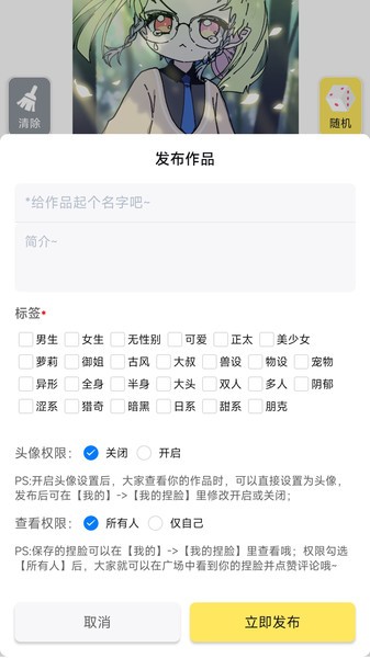 发布广场,是用户自行发布上传的作品,尽情发挥自己的想象,塑造属于您个性的作品,还可以点赞其他用户的作品哦~。