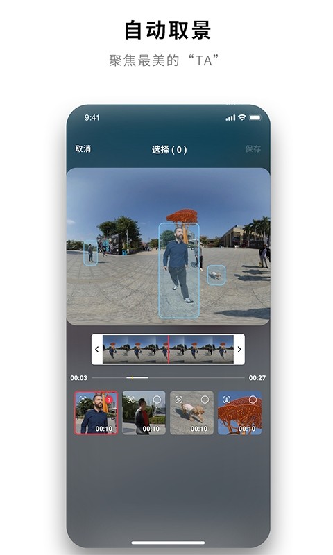 精彩太多,不知从何剪起?AI可为你自动选择全景素材中的最佳画面,并提供多种成片效果供你挑选。