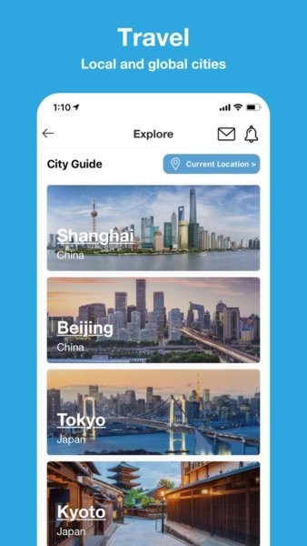 1、城市选择,打造多个城市的潮流社交圈,上海,北京,纽约等任你选择。