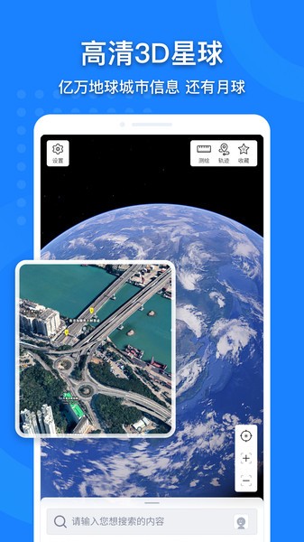 提供谷歌地球(基于谷歌地图)、百度地球(基于百度地图)、百度月球等多种3d球体,App在手,世界跟我走