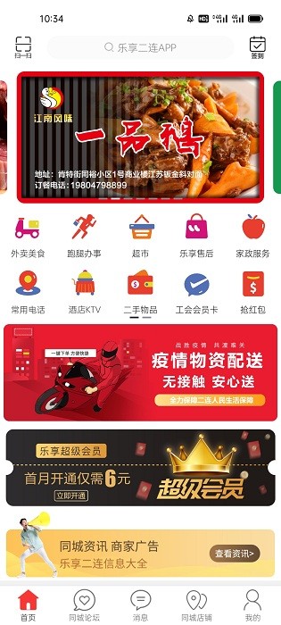 乐享二连防疫配送平台是一款为二连市民打造的生活服务神器,功能齐全,涵盖外卖、商家查询、在线交流等多种服务。作为本地人自己的APP,它不仅提供吃喝玩乐的信息和团购优惠,还能帮买帮送,特别方便。软件会根据你的位置推送附近商圈和流行资讯,还有丰富的活动和大折扣,让生活更实惠有趣。