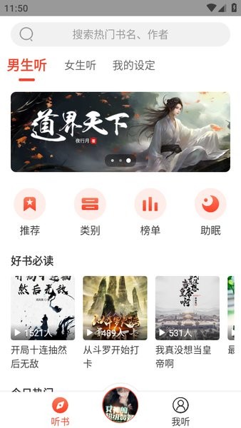 免费听小说软件无广告无会员,非常的好用,推荐超多优质好书,是免费听书app的首选。男生女生都有自己的专区,每天还有热门作品推送,让大家天天都能听新书,小说听不完。