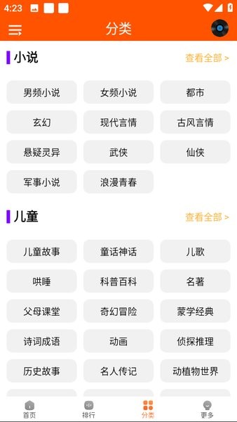 6.热门分类超级多,网罗都市、言情、玄幻、武侠、穿越、悬疑等热门分类,陪你度过每一个日夜。