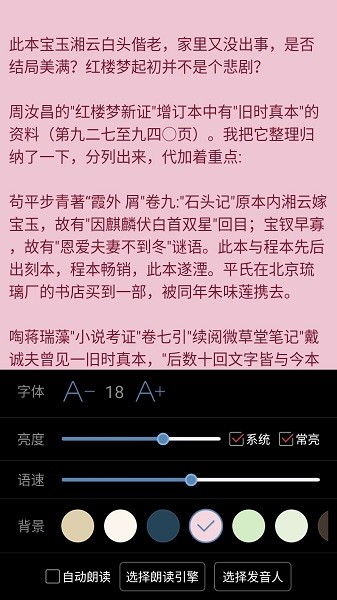 特别是它的语音功能,支持多种发音人选择,还有方言和背景音乐的设置,让听书变得更有趣了。定时关闭朗读的功能也很贴心,晚上睡觉前用它听书特别方便,时间一到就自动停止,再也不怕被吵醒。