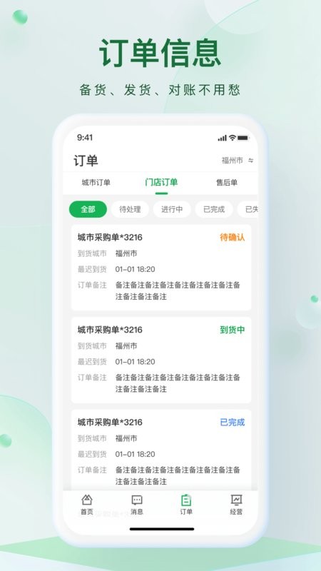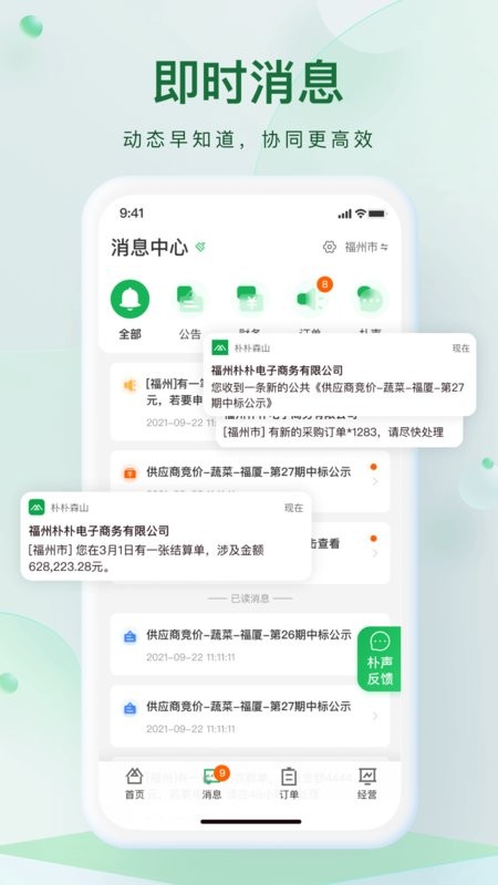 -- 各种订单消息即时推送,高效协同;