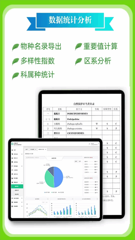 它支持多种调查形式,包括样方、样线等专业方法,还有拍照识物、语音记录这些便捷的功能,特别适合像我这样不太擅长写文字的人。软件的数据统计功能也很强大,可以生成物种名录、多样性指数分析等等,对于科研人员来说一定是个利器。