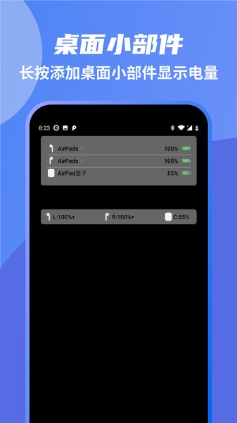 andpods最新版是一款耳机辅助工具,不仅体积小巧,功能也比较强大,接入耳机,可以自动弹窗,显示电量信息,还支持桌面小组件,支持多种耳机设备,更可以帮助用户辅助查找耳机,操作简单易上手,没有广告骚扰,可谓是方便又好用!