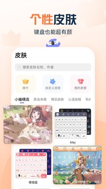 -- 可免费使用所有特色皮肤,方便用户定制个性化键盘。