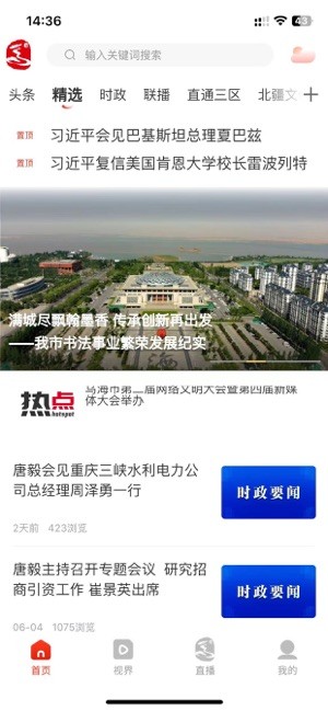 1、首页新闻:热点推荐、本地新闻、学习党政!