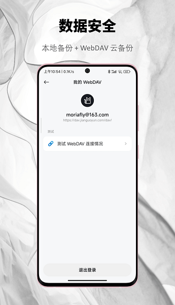 椒盐笔记采取了软件内数据库保存、本地指定文件夹备份、WebDAV 备份,充分保护用户隐私