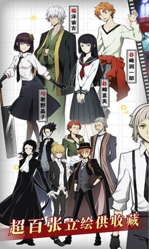 动画的角色们自不在话下,还有穿著游戏原创服装的角色,以及充满特色个性的Q版角色!不只「武装侦探社」的伙伴,「港口黑帮」也可以成为你的队员!赶快体验专属自己的文豪Stray Dogs世界吧!
