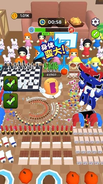 我最近也下载了这款游戏,一开始就被它的玩法吸引住了。操作很简单,就是用手指控制史莱姆移动,吞噬周围的东西。刚开始的时候你只是一个小小的粘液点,但只要不断吃掉周围的物体,就能迅速长大。