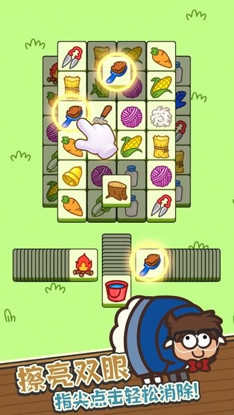 1.点击三张相同的图片,连接在一起消除,注意下面的卡槽。