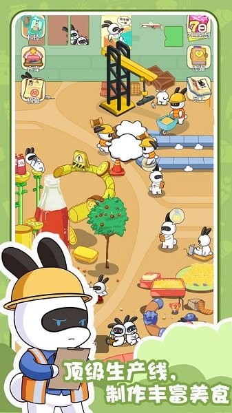 游戏玩法很佛系,不需要太紧张,适合休闲娱乐。你可以通过拓展生产线、招募更多兔子员工来壮大自己的餐厅。从简陋的澡堂到豪华高端的餐厅,看着兔克们一步步创业成功,感觉特别有成就感。而且还能给客人提供各种有趣的体验,比如牛奶浴和SPA,完全不按套路出牌。
