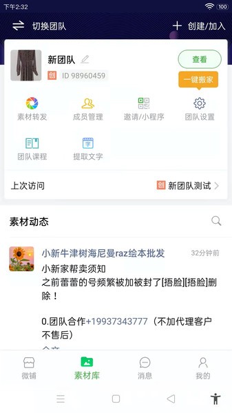 2、支持创建多个团队,和加入多个团队,存放不同业务的素材;