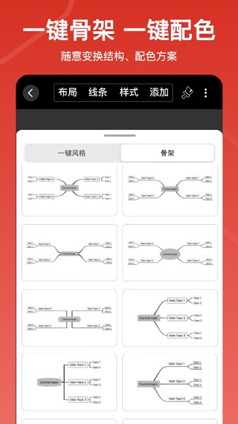 自由添加主题、子节点,按照思路将不同的主题对应联系。