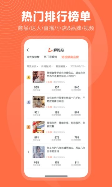 4.发掘爆款商品,提供达人带货榜单,抖音小店抖店销售数据榜单。