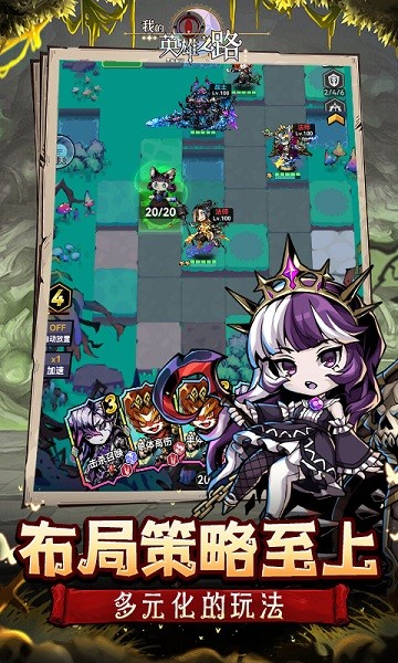 《我的英雄之路》是一款哥特式暗黑风格的卡牌手游,将经典童话角色“黑化”后融入游戏,带来颠覆性的视觉体验。游戏中玩家需要在扭曲的梦境中构筑防线,抵御外星入侵者,同时通过策略搭配阵容、升级英雄和装备来提升战斗力。游戏特色包括丰富的音效、多样化的资源获取途径以及支持离线挂机的功能。