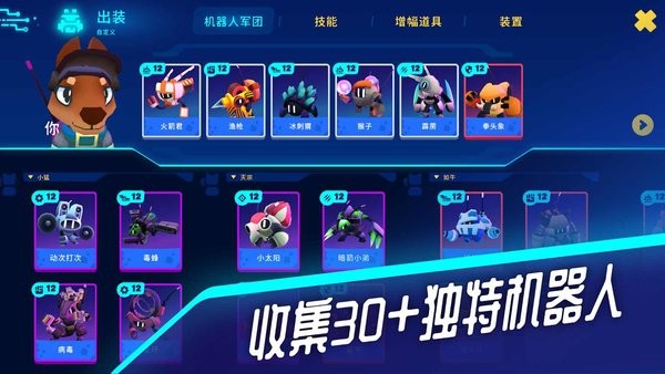 在独特的战略战斗系统中智胜敌人。当您制定完美的作战计划以击垮敌人时,您的机器人可以在竞技场中使用先进的AI技术实现跳跃、眩晕及制造爆炸。每个机器人都有其独特的技能和强大的终极技能。将其与强大的玩家能力结合起来,以实现最强的战斗表现。