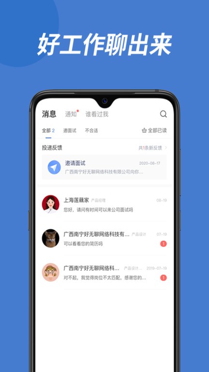 3、随时在线和HR交流,找工作不出门,好工作聊出来