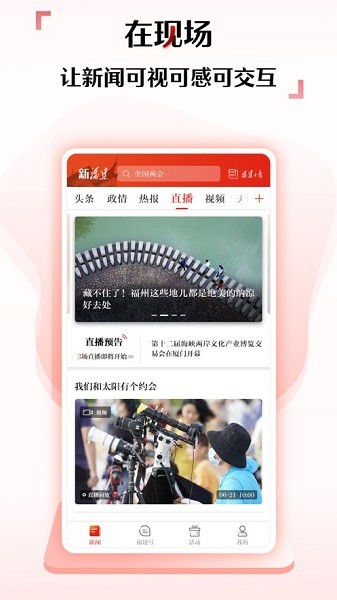 围绕中心、服务大局,立足八闽、胸怀世界,专注时事、关切民生,传播政策、解读事件, 24小时不间断更新,一端网罗权威、新鲜的新闻资讯,速递到手机屏。