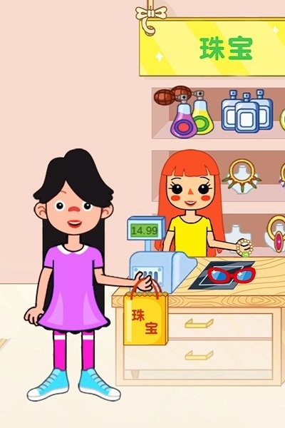 1、这里有餐饮、运动、服装、乐器、美发、珠宝、汽车、杂货店等8个场景,34种趣味角色任意选择扮演,几百种物品配件都可以随意搭配使用,让小朋友们体验到最真实的购物乐趣。