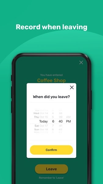4、离开时,在应用程式按「离开」,有关出行记录会被加密并储存在你的流动装置内