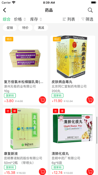 商品种类多达数百种,包含中西药品、维生素、滋补保健等。