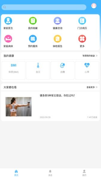 点击首页,浏览app所有的功能分类,选择需要的功能服务,获取相应的健康资讯