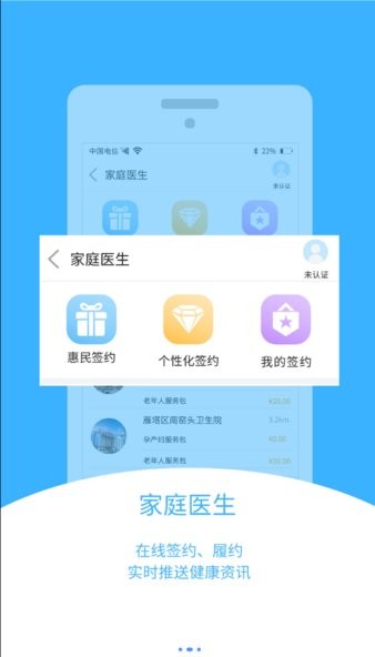 选择个性化签约,提供网上签约的服务,用户可以在平台与健康医疗机构进行签约,方便快捷