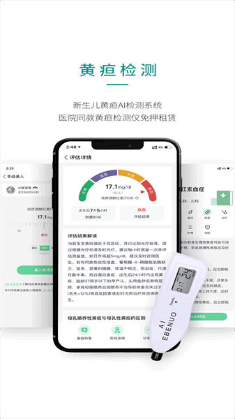 这个APP的亮点在于它不仅有多种多样的仪器设备可供选择,还有家庭医生7x24小时视频咨询服务,医生平均9秒响应时间,非常高效快捷。特别是可以免费租用三甲医院同款黄疸仪,顺丰快递快速送到家,让新手父母可以方便地观察宝宝黄疸变化。