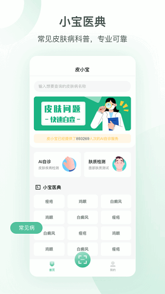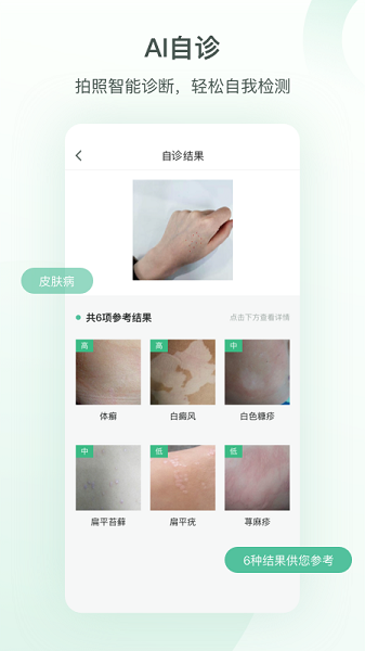皮小宝提供皮肤病拍照识别、照片检测、AI拍照肤质检测、疾病知识科普、经验分享等功能。只需一键拍照,便可得到皮肤病预诊的可能结果及详情供参考,还可以轻松获取脸部肤质情况。它是专注于皮肤及皮肤病领域的ai人工智能辅助诊断工具及一站式解惑分享平台,为您提供专业且无私的帮助,而且是免费的哦。