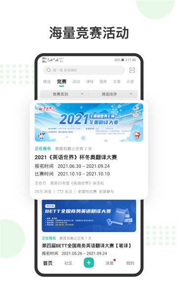 赛事、文章分享到社交平台,邀请好友组队参赛,共同成长!