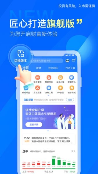 沪深港股市行情、一键申购新股、便捷的交易功能。