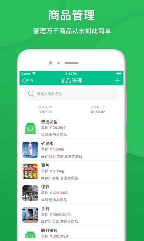 商品管理:商品扫码录入,自定义商品属性,商品套餐灵活按需设置,商品智能补货提醒,商品管理更轻松。