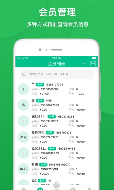 会员管理:一键新增会员,包含会员等级、会员折扣、积分系统、储值系统等,与会员建立深度互动。