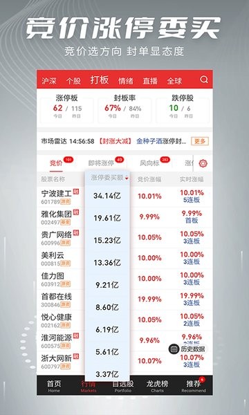 【行情-打板】集合竞价阶段聚焦个股涨停委买额,大概率提前把握资金对热门个股以及板块的预期。