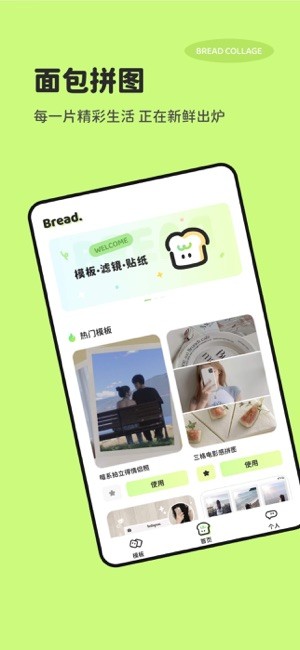 面包拼图最新版是一款好用的拼图相机拍照美化工具,提供热门模版和素材工具使用,风格类型不一,自由选择,在线添加,装饰贴纸、滤镜,制作全新不一样的照片效果,在线编辑调整,一键拼接,快速出片,操作简单又方便,满足需求!