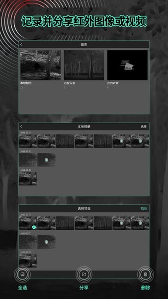 TargetIR,红外热成像夜视仪专属移动端APP。通过Wi-Fi连接设备,用户可实时预览热像仪的高清画面,并对其进行全功能的远程控制操作。该APP除拍照、录像外,还可远程获取热像仪的图库,随时分享至其它应用平台,是一款真正实现全功能远程传输和控制的移动应用。