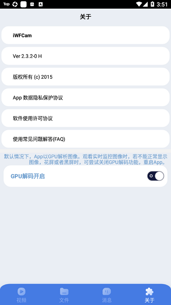 App方便用户 配置摄像机连接互联网,远程查看实时视频内容,抓拍照片和录像,方便用户监控自己家里的情况。