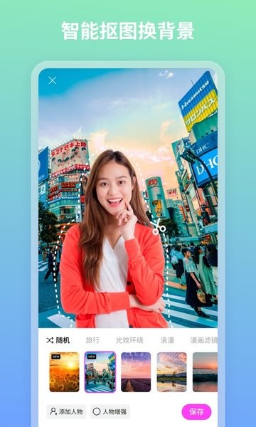 1、玩法丰富的手机趣味相机软件,支持智能抠图、图片编辑功能,汇聚丰富模板、素材,随时随地编辑图片;