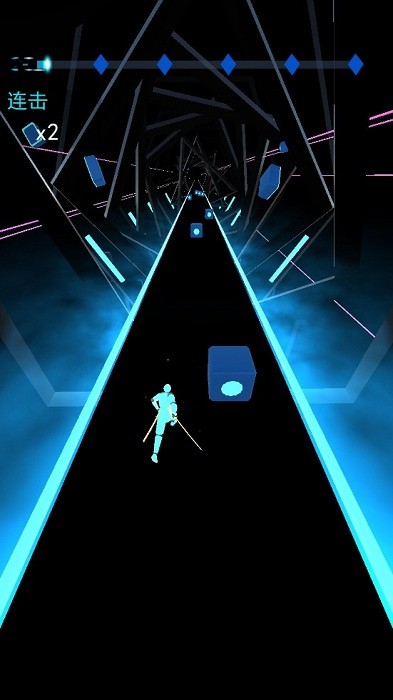 5、打击感是非常爽的,特别在砍碎那些带有音符的方块的时候玩法
