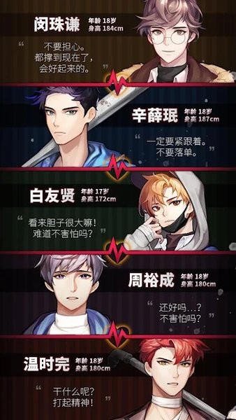 1、这个末日中唯一能让你感到高兴的就是自己的身边居然有5位美男,各有自己的性格特色,你可以选择自己喜欢的角色进行攻略,解锁独特的恋爱剧情;