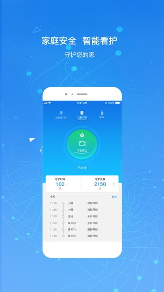 2、可以远程开启智能锁的智能看护功能,能够对全屋进行布防;