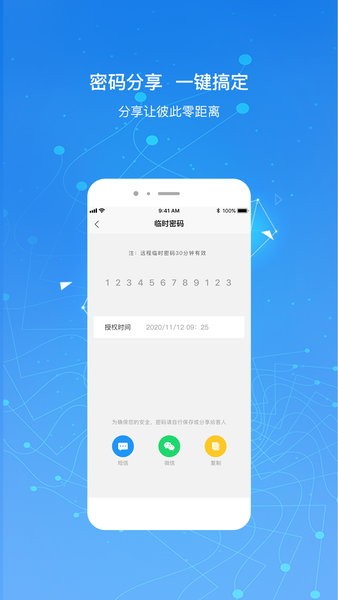1、提供多种分享方式,分享密码的话可以选择短信、微信以及复制粘贴的方式;